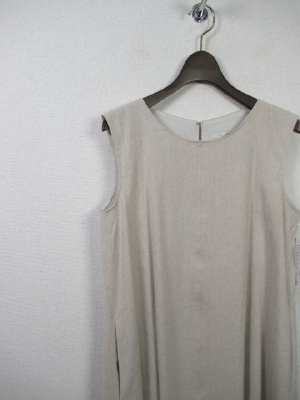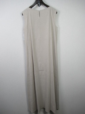 マキシワンピース 裾は広がったシルエット ノースリーブで首の後ろにカギホック 胸元あたりだけ裏地つき 脇ポケット