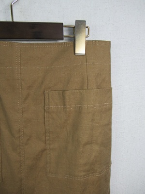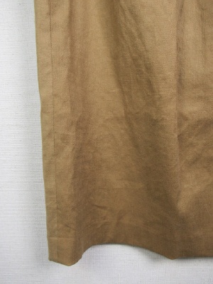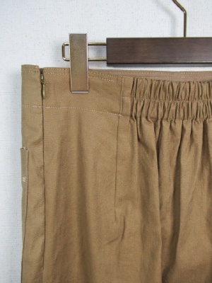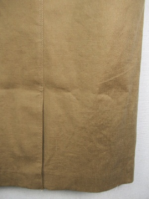 ミモレ丈のベイカー風タイトスカート、横ファスナー、ウェスト後ろ中央がゴムでギャザーデザイン、前スリット、手洗い可能、裏地あり