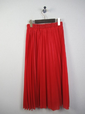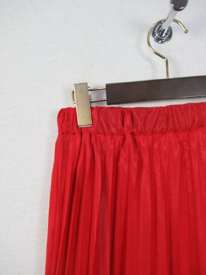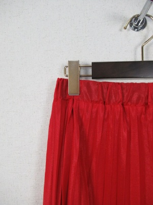 ウエスト総ゴム アコーデェオンプリーツスカート 裏付き 光沢の生地 ワンサイズ展開 くるぶしよりやや上 手洗い可能