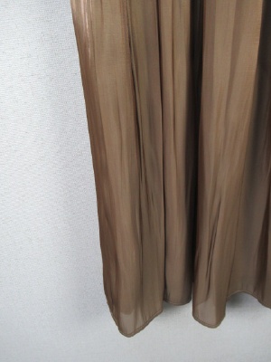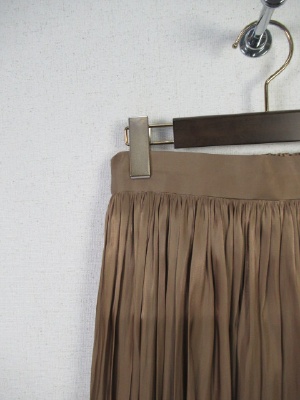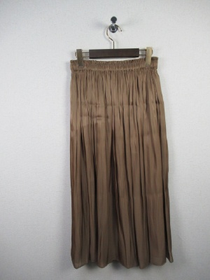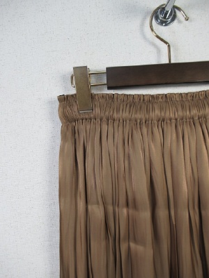 光沢のある細かいギャザースカート、ウェスト後ろがゴム(ファスナー無し)、裏付き、手洗い可能
