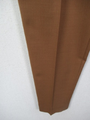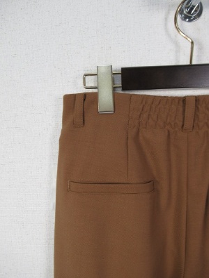テーパードパンツ、センター入り、前タック2つ、前ファスナー、ウェスト後ろ中央ゴム入り、ID:99474と形が同じ、素材違い