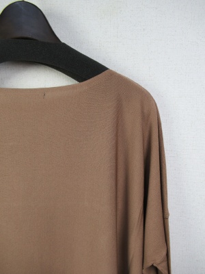 スクエアデザイン 身ごろはやや緩くそでは細身 ボートネックに近いデザイン 裾脇スリット入り 手洗いOK