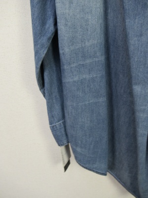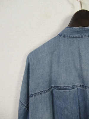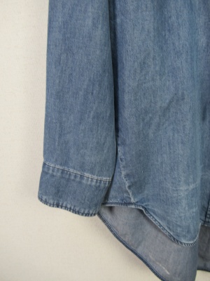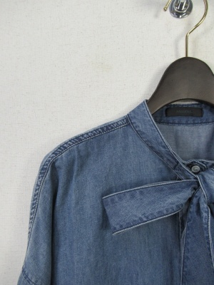 デニムのビックシルエットシャツ リボンタイ 前上がりシルエット 綿100%