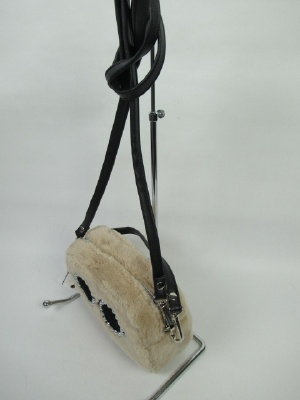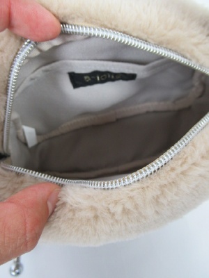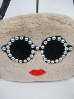 コンパクトなポシェット型 短い持ち手とショルダー付き 天ファスナー 大きな眼鏡のキュートなバッグ