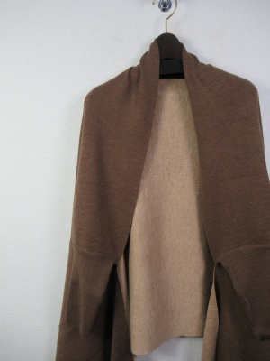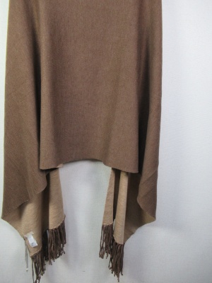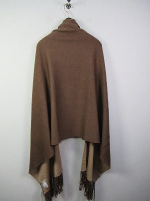 袖付きストール風ケープ リバーシブル ダークブラウンとグリーンはうらがベージュ 黒はグレーです シルバーのピンブローチ付きです