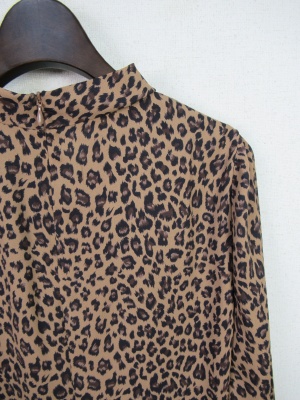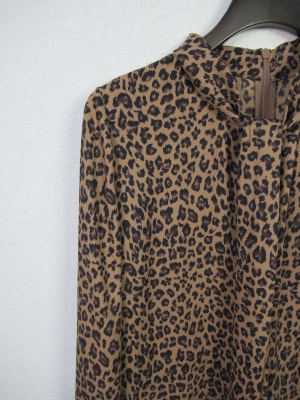 アニマル柄 見せかけのタイ風デザイン 後ろファスナー 袖カフス