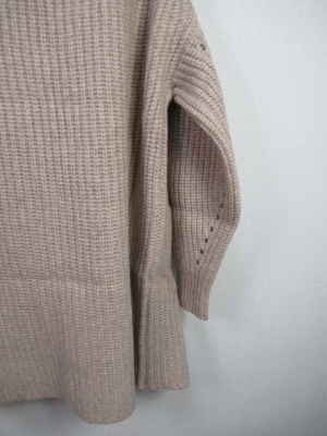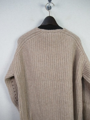 ザックリしたシルエット 畦編みニットカーデ Vに開いた前立て ボタンなしの着流し型 ポケット有り