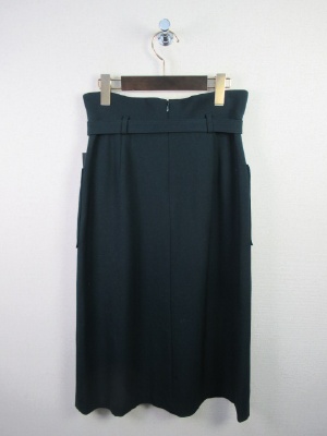 ハイウエストタイトスカート 裏地あり フロント大きなポケット タック有り 共ベルト 後ろファスナー
