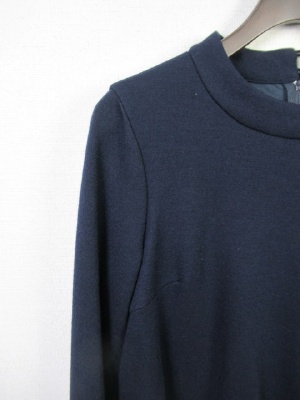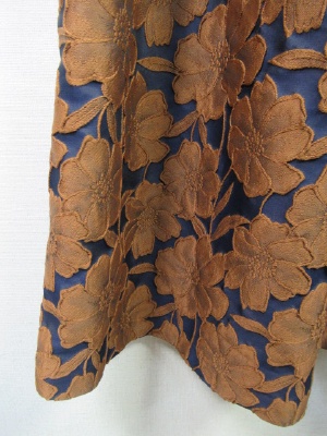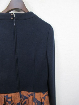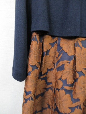 ドッキングワンピース 身ごろは無地 ウールのカットソー(裏地付き)スカート部分はボリュームのある生地ネイビーに大きい花のレース模様 裏地あり 後ろファスナー