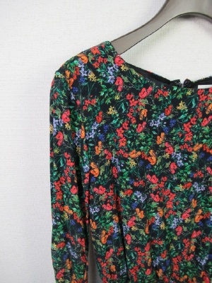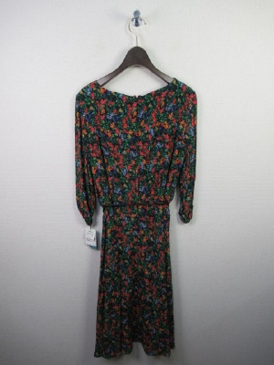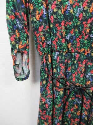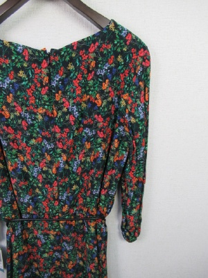 ウエスト切り替え(ゴム入り)合皮の紐ベルト付き 身ごろ裏地あり 後ろファスナー 袖口は玉縁仕上げ 11号ですがそんなに大きく感じません