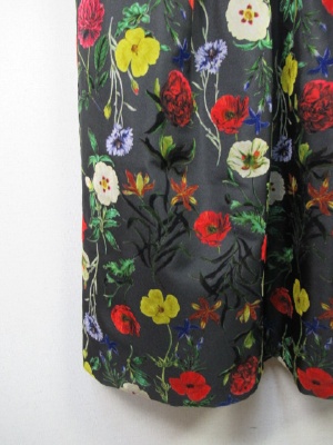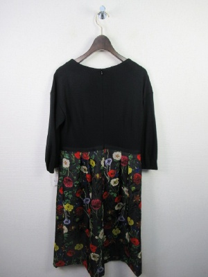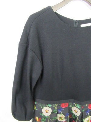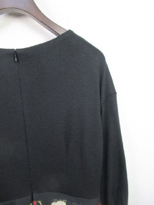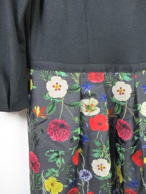 ドッキングワンピース 身ごろはウール袖付けややドロップしてます スカート部分は花のモチーフ(張り感のある生地)裏地付き 後ろファスナー ウエストベルト部分に2cmほどのグログランテープ