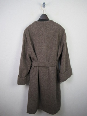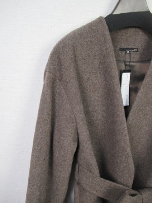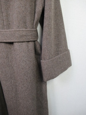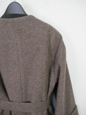 ドロップショルダー ガウンコート 襟なし 袖口ダブル うら付き 共布サッシュベルト 脇スリット 張りポケット