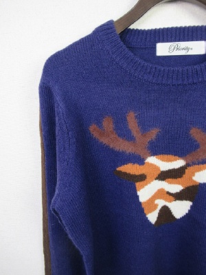 編みこみ(トナカイの絵)白は袖山と裾は黒 パープルは茶系