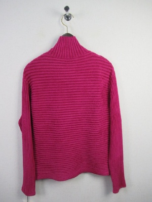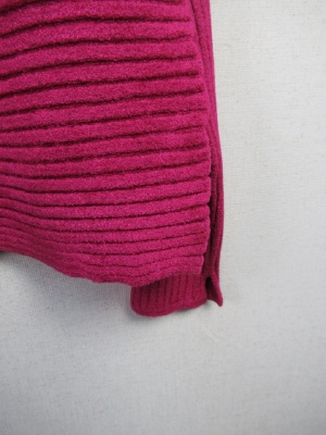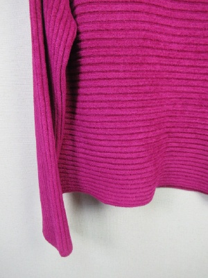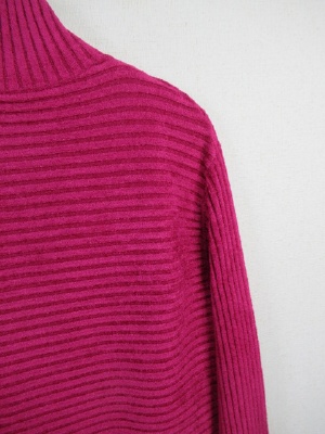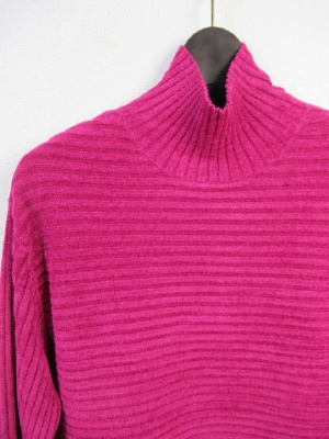 柔らかなモール素材 ハイネック 横編みリブ 裾はやや広め 袖口スリット