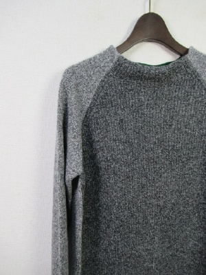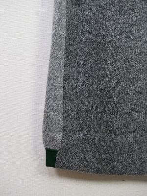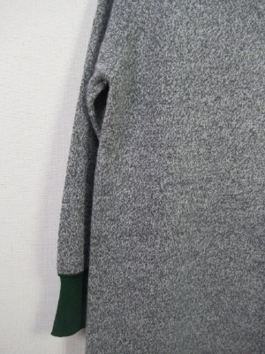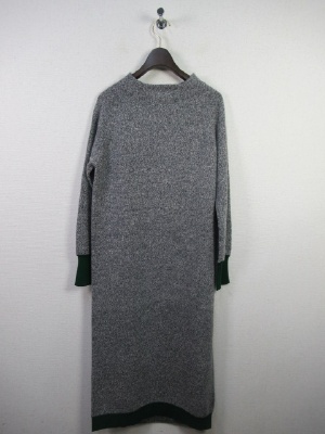 ニットワンピース 前後ろのニットの色が配色(前の方がやや濃いめのグレー) 裾後ろと袖口グリーンの別布