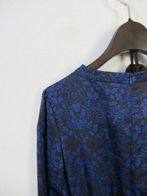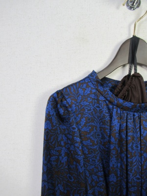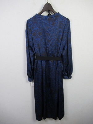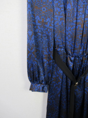黒はベースが黒で花柄がベージュ、ブルーはベースがダークブラウンで花柄がブルー、ウェスト部分はゴムでベルトは黒、後ろファスナー、ペチコート付き、手洗い可能