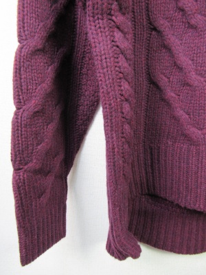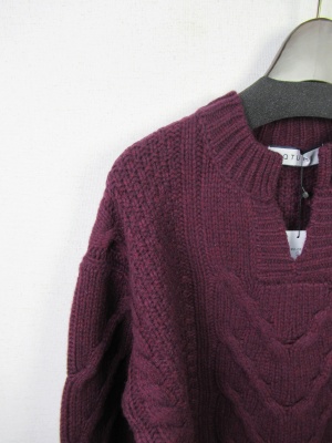 Vネックのような胸元スリット ケーブル編み 中細ニット 前上がり