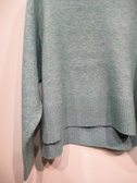 杢のドロップショルダーニット、裾前後差あり、脇スリット、袖口・裾・首周りリブ、手洗い可能