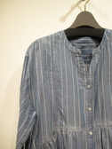 ※春物新作 ストライプ柄 中央から切り替えその下はギャザー寄せ フロントボタン 裾前上がり 袖カフス 手洗い可能