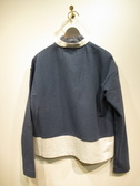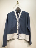 ※春物新作 配色使いのカーデ ドロップショルダー V開き 前たてからネックにチュールのフリルをドッキング 手洗い可能