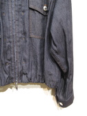 ※春物新作 インディゴGジャン、ドロップショルダー、やや身幅広め、前ファスナー(シルバー)、裾はギャザーゴム入り、ステッチオレンジ、裏地なし、柔らかい生地、手洗い可能