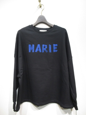 ※春物新作 ドロップショルダー、身幅広め、裏毛のトレーナー、ロゴはブルーの刺繍、裾はドロスト、手洗い可能
