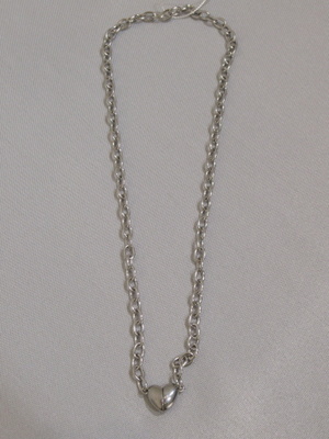 ※春物新作 大きめのチェーン、ステンレス素材、ハート部分がマグネットになっている(着用時)