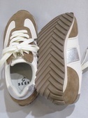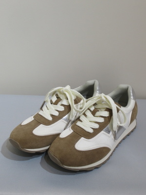 ライトブラウン部分が合皮スエード、シルバーと白の配色