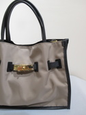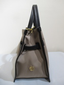 ナイロン生地、持ち手とトリミング・ベルトは牛革(牛床革)、金具はゴールド、マグネット留め、内ポケットあり、ショルダーベルト付き