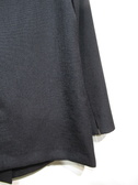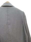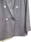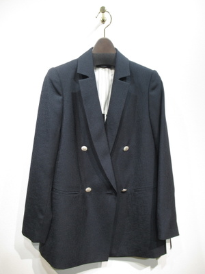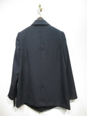 紺色のダブルジャケット、テーラード襟、裏は背抜き(ストライプ柄)、裏地は前身ごろと袖筒にも付いています、袖口スリット入りで折り返しできます
