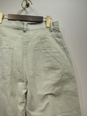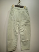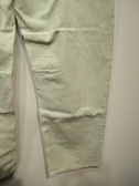 生地は綿100% 洗いをかけてますので所々色味わいのある色落ちが特徴 全体に緩めのカービーシルエットのため裾にかけてすぼみがかったシルエットが特徴(裾フロントセンターと膝の後ろ内側ダーツ)後ろ貼りポケット左右デザイン違い 手洗い可能 同素材でスカートあり
