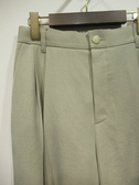 2タック入りのきれいめパンツ、センターラインあり、前ファスナー、後ろウェストギャザー、裏地無し、手洗い可能