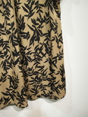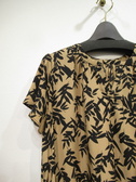 濃いベージュ系の地に黒で植物の柄 スキッパー襟 襟ぐりギャザー 前後差有り パンツセットできます