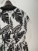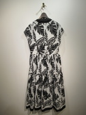 ウエスト切り替え スカートギャザー途中ティアード切り替え 身頃はフロントボタン フレンチスリーブ スキッパー襟 襟ぐりから前立てとスカート裾・・黒の配色 左脇着脱用のファシナー有り ペチコート付き
