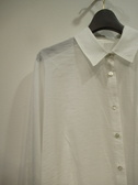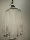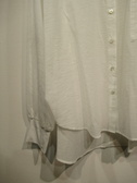 ドルマン袖 ビックシルエットシャツ 綿ナイロンの透け感のある生地 裾はラウンドで後ろが長め 袖口は異素材のリブニット たくし上げて止まります 手洗い可能