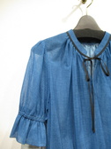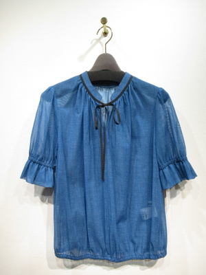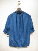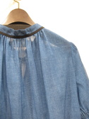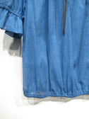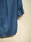 メッシュのように目の洗い生地感が特徴色はデニムのような色合い 裾と袖口の方にゴム入り 襟ぐりはギャザーでリボン紐 手洗い可能