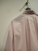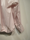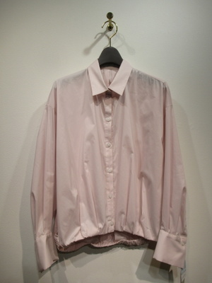 ドロップショルダー長袖シャツ 裾はゴム入り 内側に折り曲げてます コクーンシルエット 後ろ身頃タック入り 袖カフス広め ブルーのみストライプ柄 ほかは無地 手洗い可能