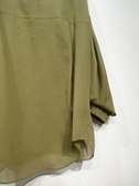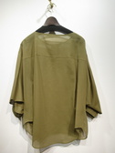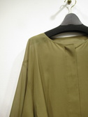 ドルマンスリーブ、襟無し、前開き比翼ボタン、袖口幅広ゴム入り、裾はラウンド型、手洗い可能