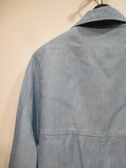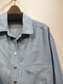 ステンカラーシャツ シルバーのボタン (袖カフスも) 左胸ポケット 身頃の中央で切り替えあり 手洗い可能
