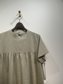 ヨーク切り替え ギャザー寄せ 半袖ネックの後ろボタン 脇ポケット 裏地無し 手洗い可能