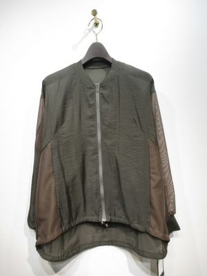 ざっくりデザインのブルゾン 裾は前後差があり 後ろ長め ドロストで絞りができる フロントシルバーファスナー 脇と袖山に異素材(メッシュ地)使用 手洗い可能