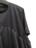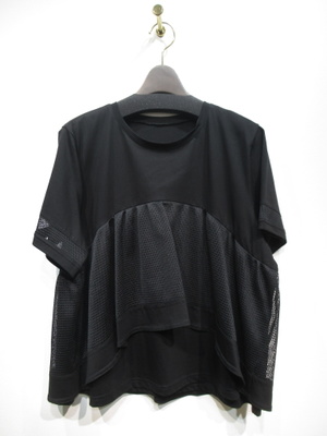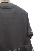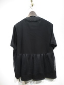 黒の無地のカットソーに細かいカットワークレースを重ねたデザイン(ヨーク切り替え)、重ねたレースはタックギャザーでふんわりと立体感がある、レースの裾は黒の無地、お袖も袖口近くに同じカットワークレースをあしらいやや透け感ももたせています、手洗い可能
