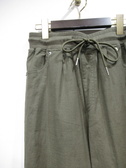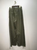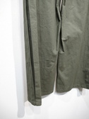 ソフトワイドパンツ、裏地なし、ウェストゴム入り+紐調整(リブ)、脇ラインにタック入りで履いた時に立体的に見える(裾だけタック部分ミシンで止めてあります)、手洗い可能