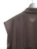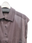 フレンチスリーブのステンカラー、カーディガン風のデザインニット、短丈シルエットなのでカーディガンというよりも閉じて一枚着がおすすめ、手洗い可能
